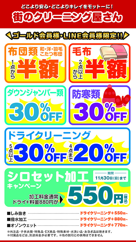 この機会にご家族みんなでシルバークリーナーズ 街のクリーニング屋さんLINE会員に登録して、お得にクリーニングしましょう!